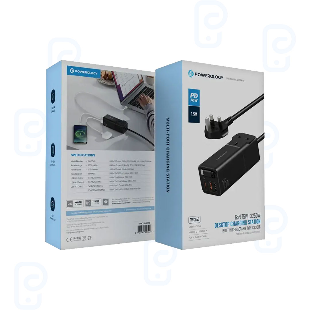 ماهیت رومیزی (Desktop) این ايستگاه شارژ روميزي POWEROLOGY به کاربران اجازه میدهد که آن را در دسترسترین نقطه روی میز قرار دهند و از شلوغی کابلها در پشت میز کار جلوگیری کنند. کابل برق ۱.۵ متری همراه دستگاه نیز انعطافپذیری لازم را برای قرارگیری در مکانهای مختلف فراهم میکند. وجود یک نشانگر LED روی بدنه، وضعیت فعالیت شارژر را به طور واضح نشان میدهد.